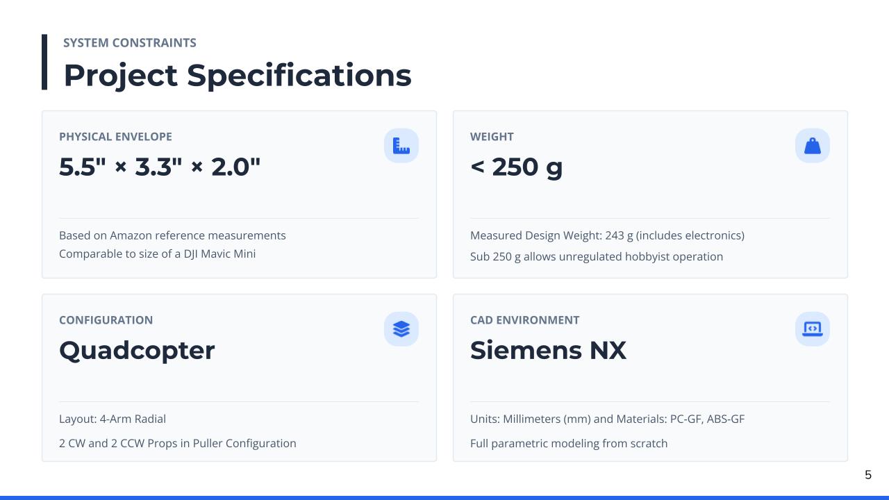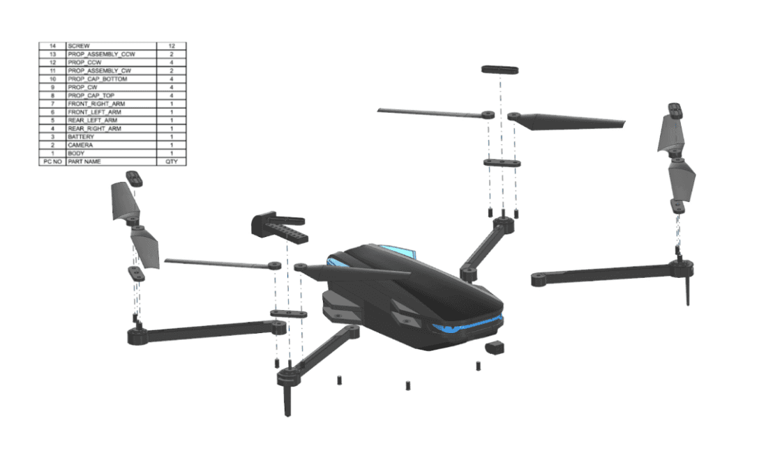 CAD Project to design and test all components of a consumer drone.